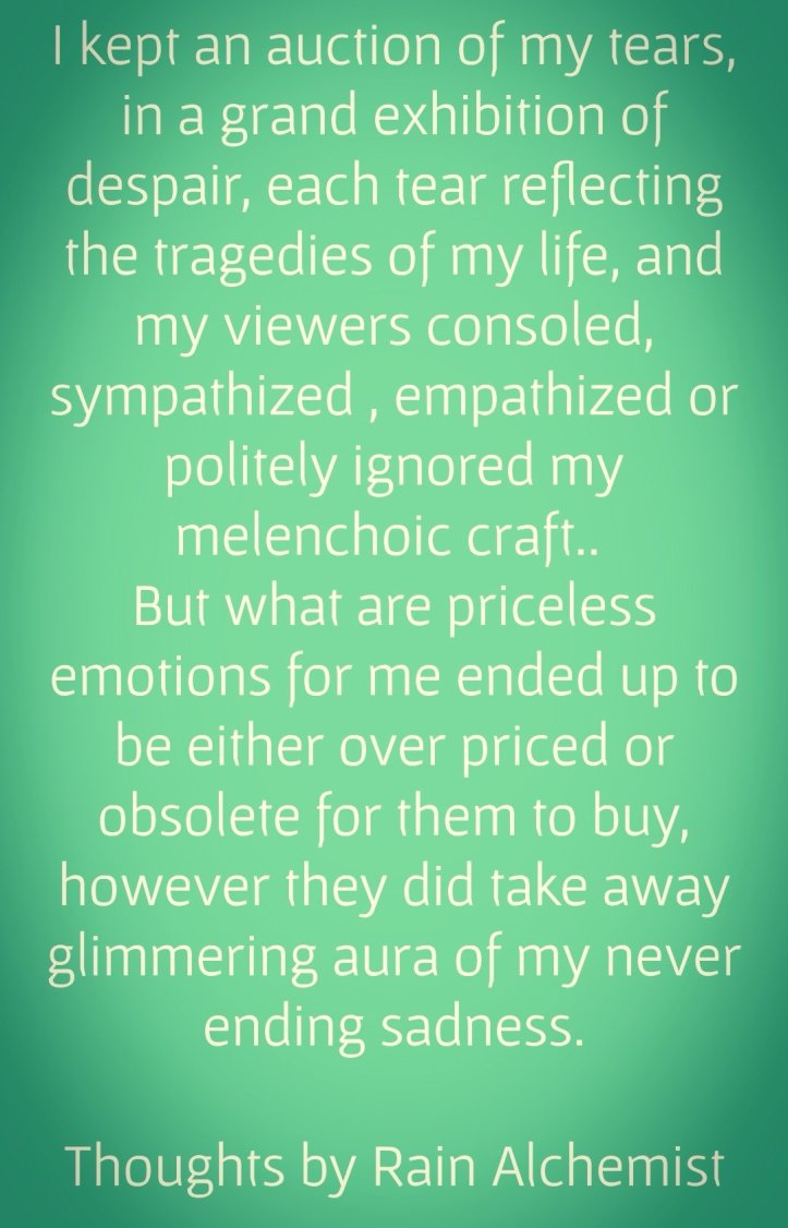 January 8, 2019 Rain Alchemist An auction of despair Share this: Click to share on X (Opens in new window) X Click to share on Facebook (Opens in new window) Facebook Like Loading... Related